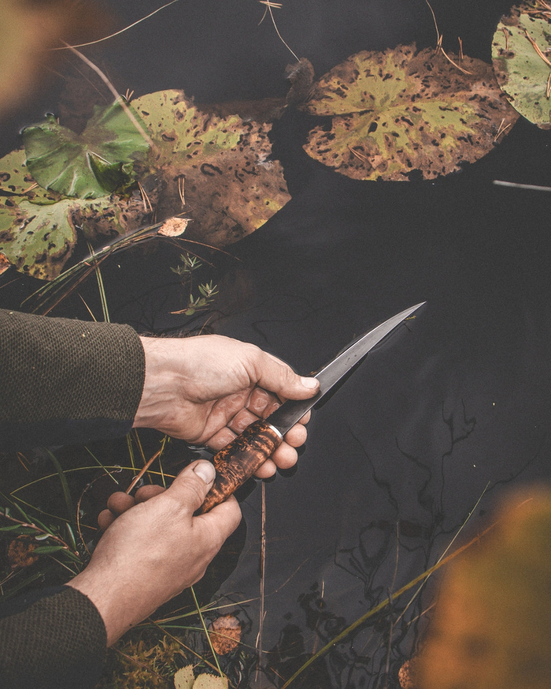 We work with the finest natural materials Finland has to offer: curly birch, vegetable-tanned leather, and our renowned high carbon steels, including our own Ultra High Carbon (UHC) steel known for exceptional edge retention.